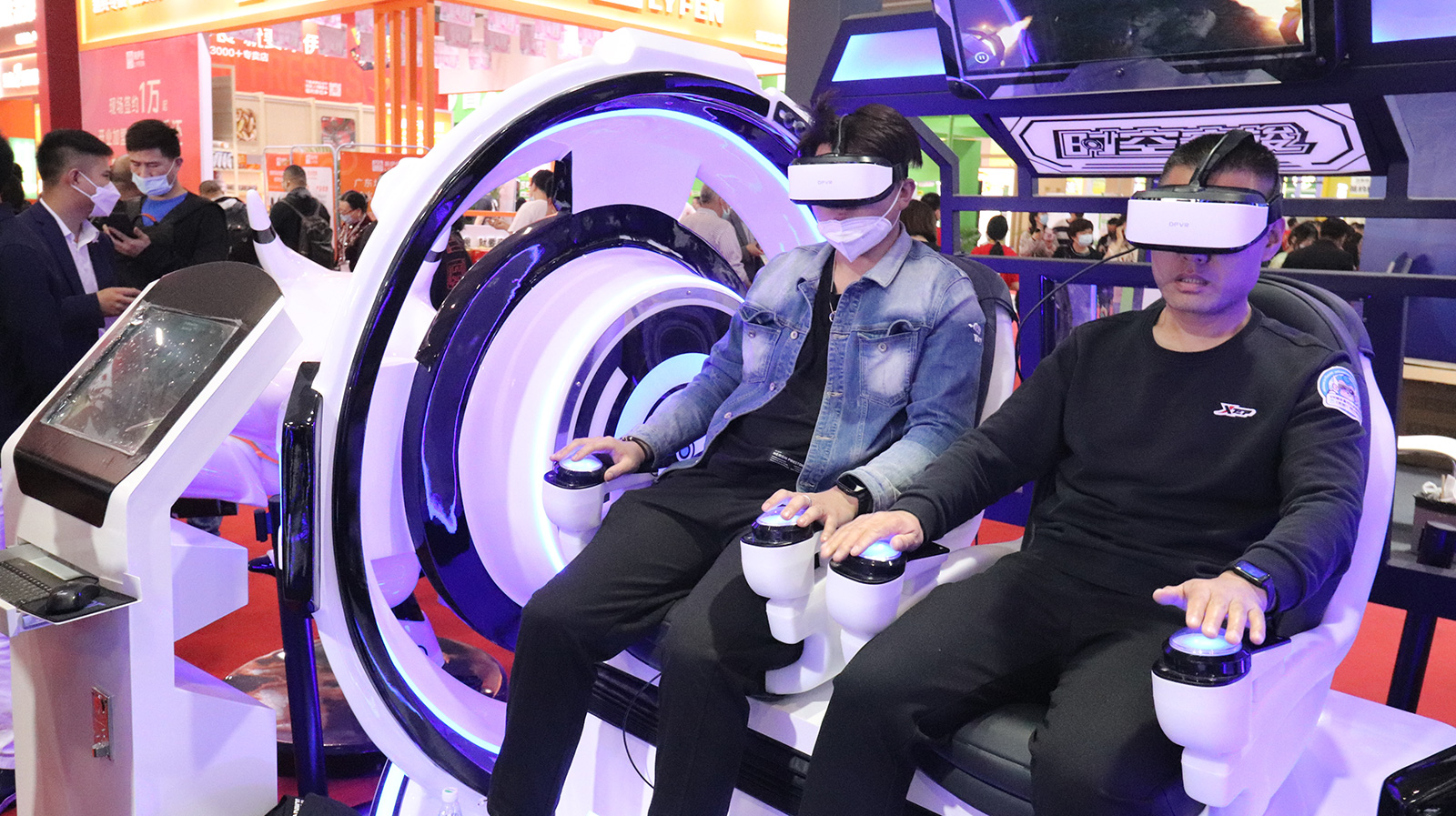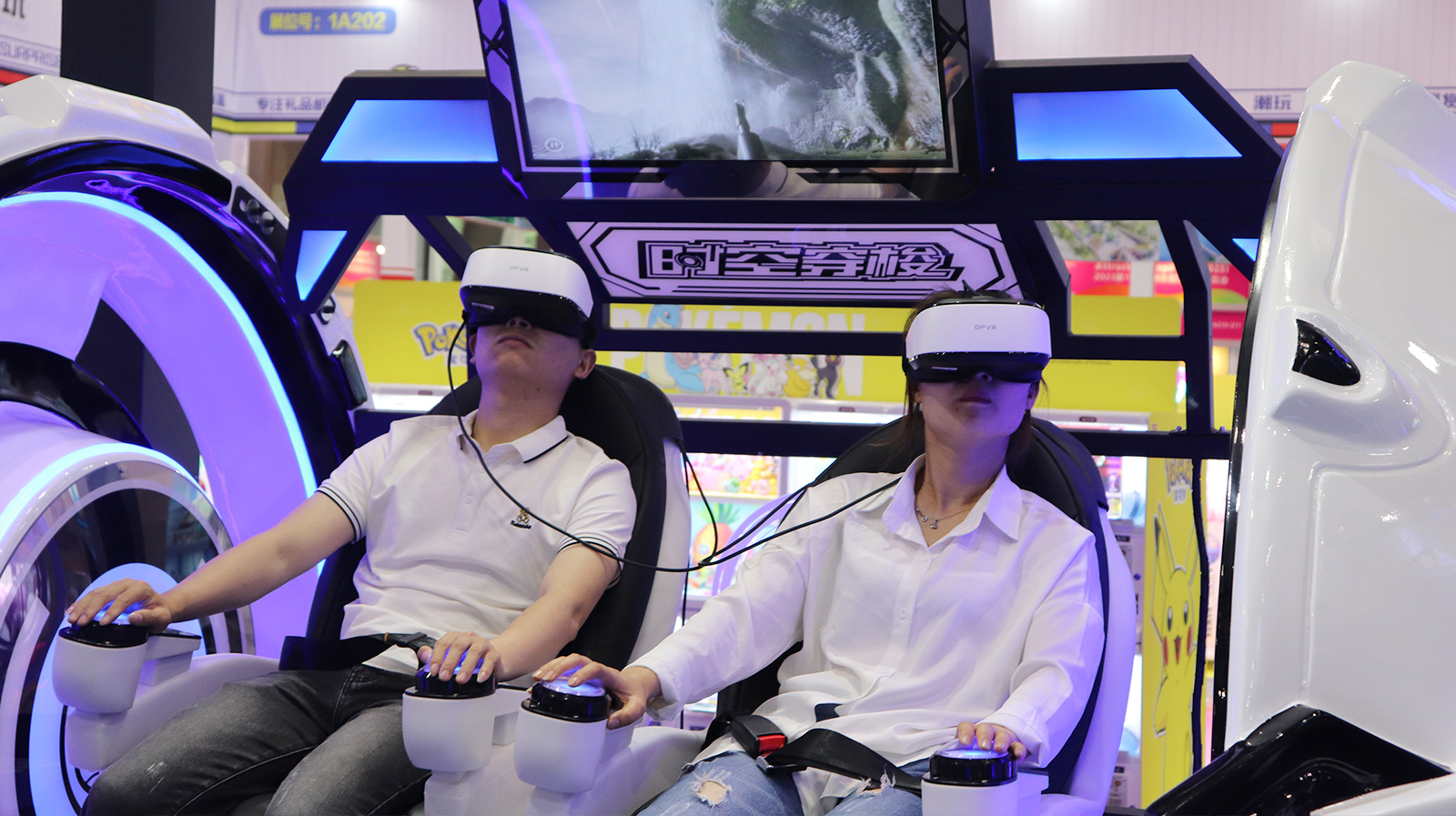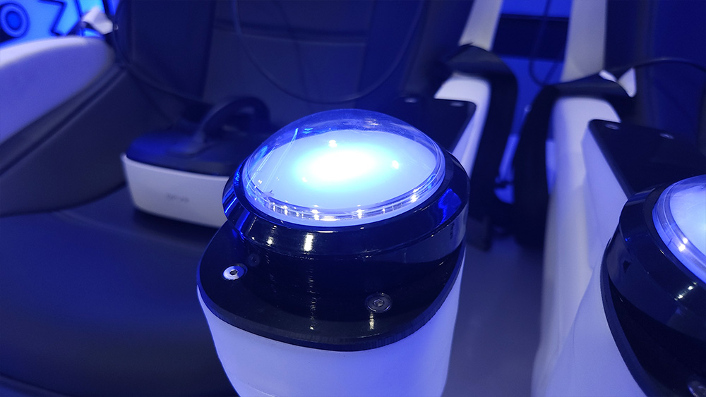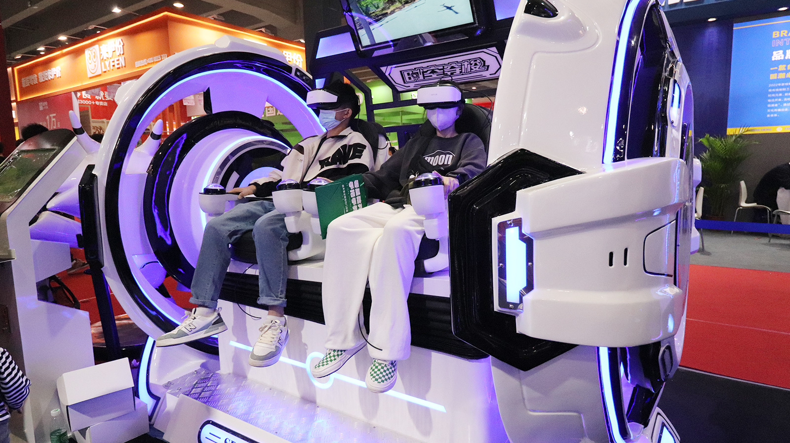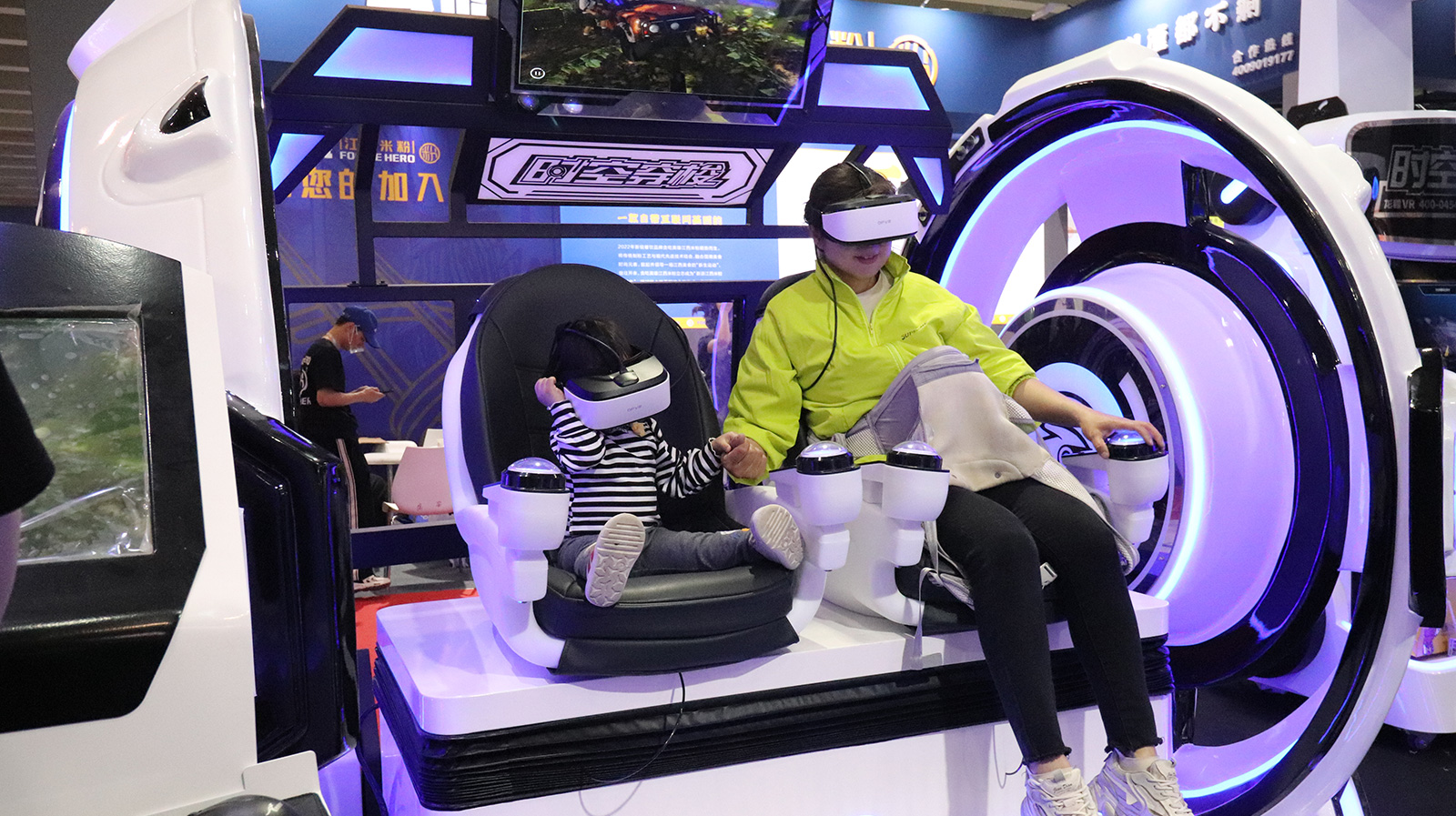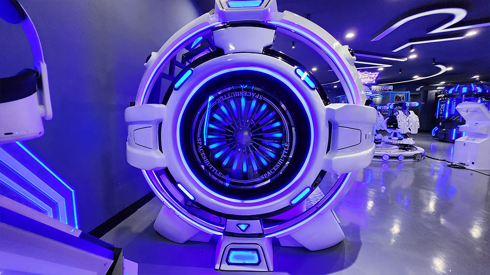 "時空穿梭2人"屬于最新代的VR雙人影院,全新時空穿梭外觀, 兩側(cè)旋轉(zhuǎn)渦輪設(shè)計動感十足,非常吸引眼球,全景式VR頭盔體驗,豪華皮革定制座椅,搭配驚險刺激的動作,給您沉浸其中的影院視覺體驗。