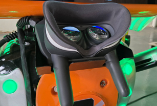 1、手持式VR頭盔,只需雙手握住把手,并將臉靠近頭盔即可開始體驗(yàn)。