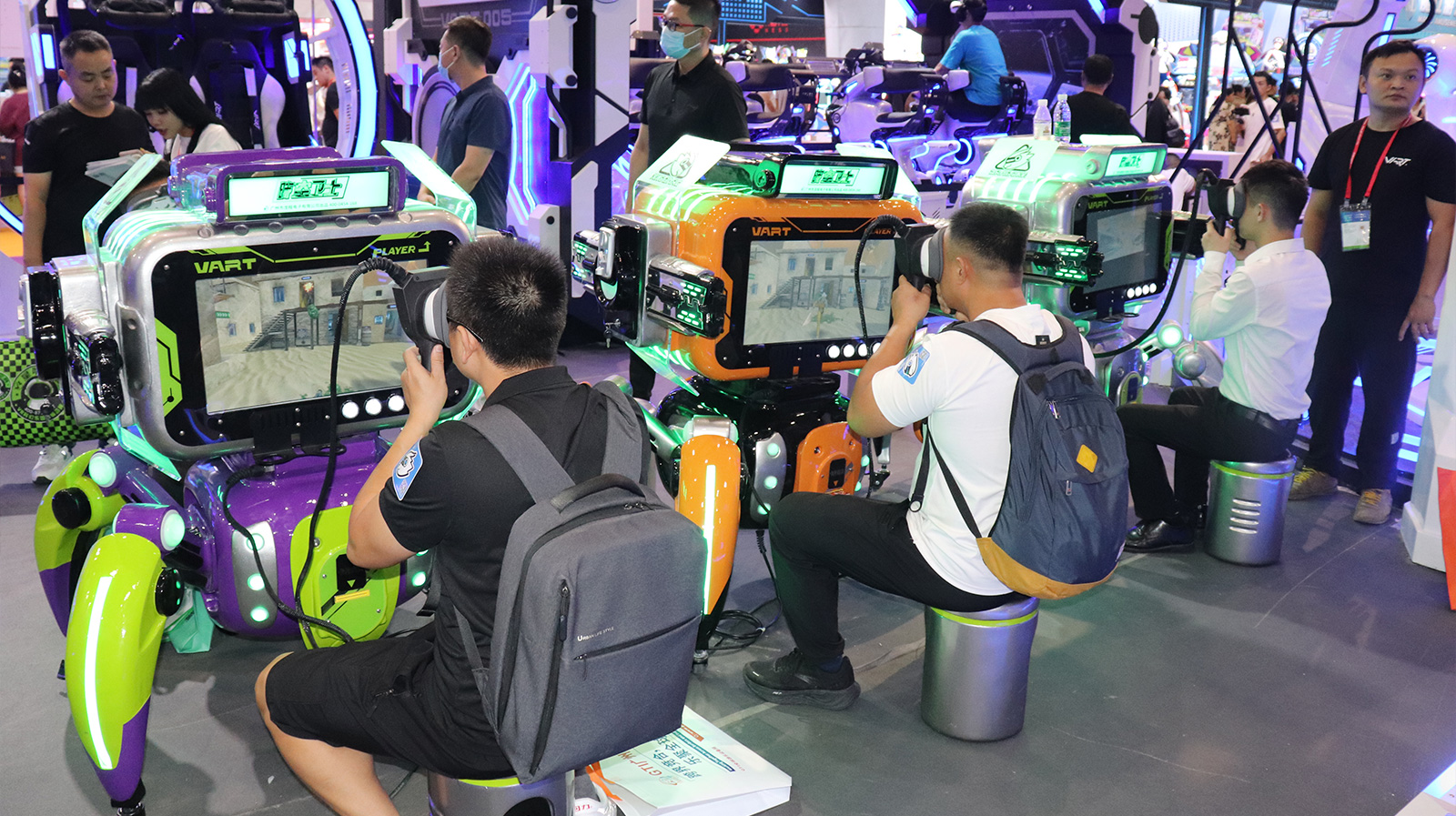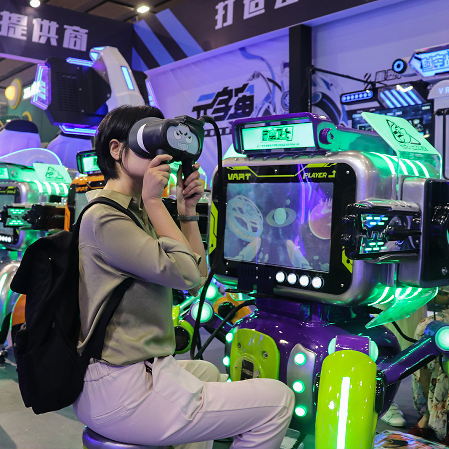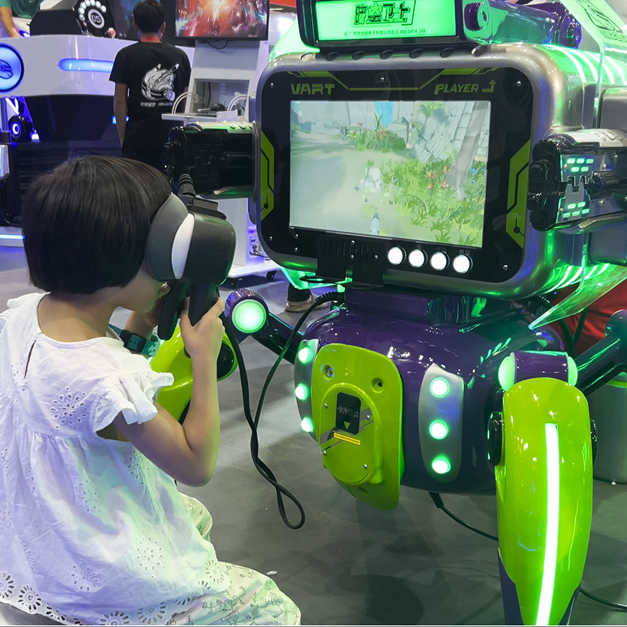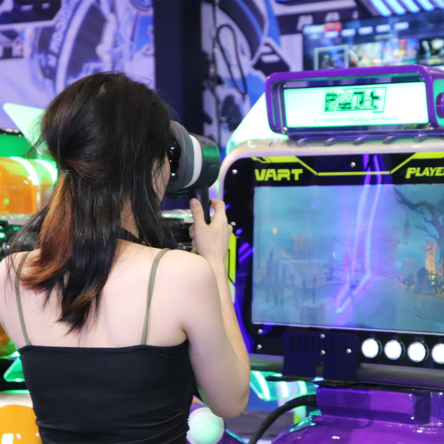 時(shí)空衛(wèi)士是一款創(chuàng)新型共享式VR自助游戲機(jī),結(jié)合了炫酷的未來科技外觀,便攜式佩戴,多種射擊游戲主題以及卡片獎(jiǎng)勵(lì)的功能,為玩家提供前所未有的沉浸式游戲體驗(yàn)。